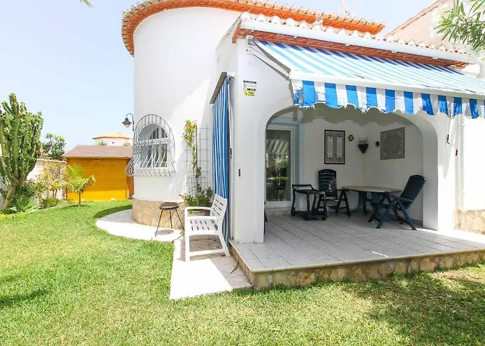 Gondola Villa ligt op circa 1 km verwijderd van Playa de Les Marines en nodigt gasten uit om te ontspannen op een terras.
